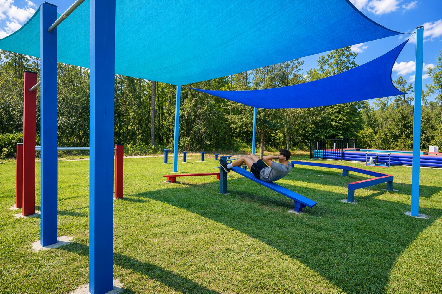 This outdoor gym was designed by the owner, Austin and Lisa Hair, who are American Ninja Warrior national finalists!