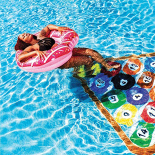 The billiard table "pool pool" features a lazy river, fast waterslide, water canon, and "chalk" hot tub! Read more..