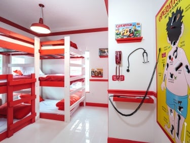 In The Twister Bedroom, the bed folds into the wall so you can play a 360 degree version of the classic! Read more..