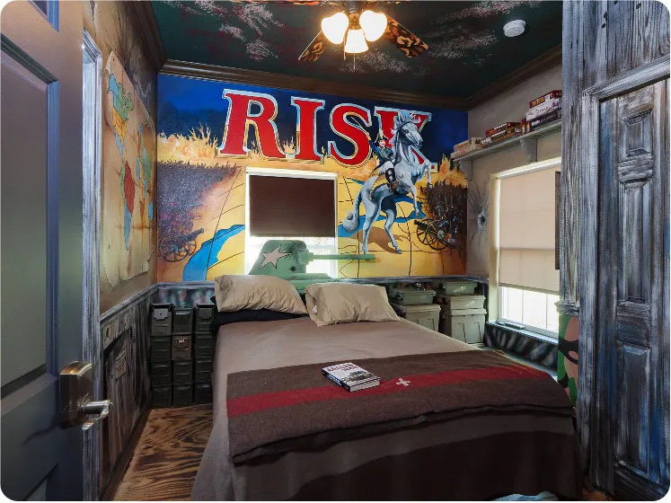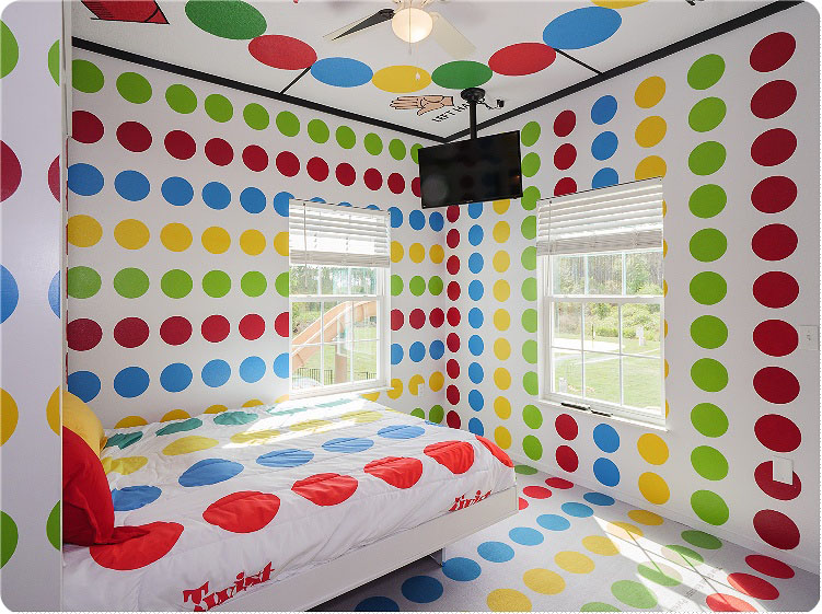 In The Twister Bedroom, the bed folds into the wall so you can play a 360 degree version of the classic! Read more..